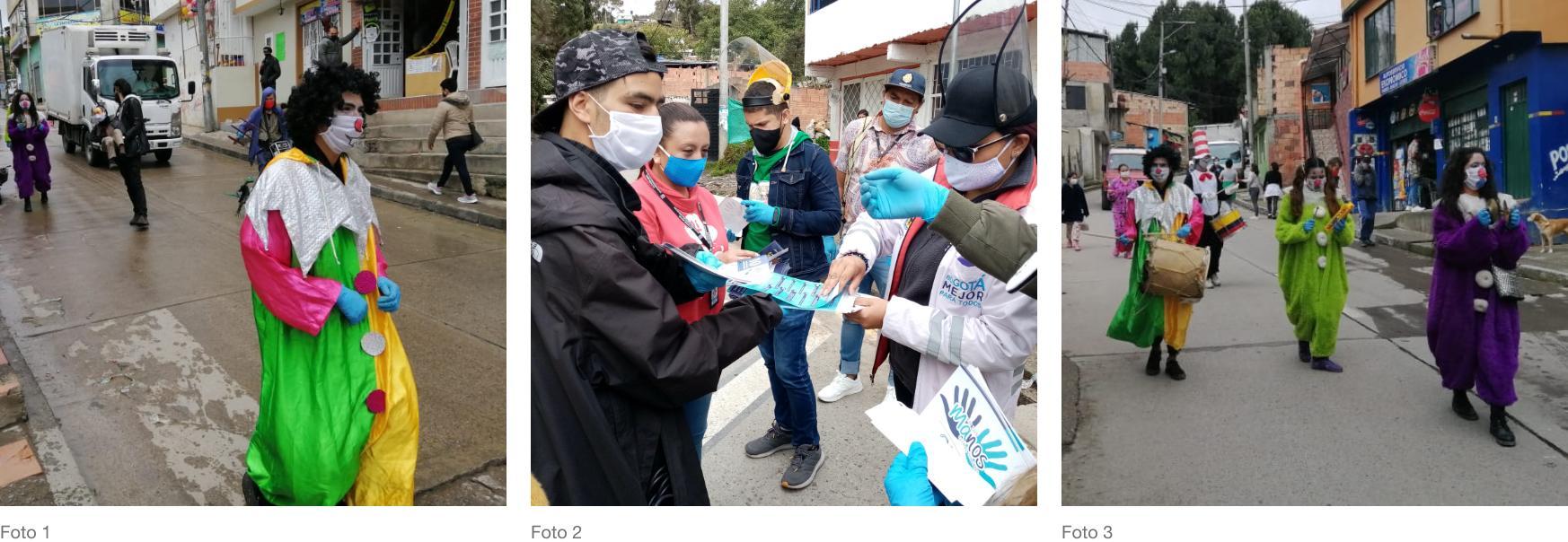 Así, los jóvenes que hacen parte de la Red El Pueblo y sus personajes, en compañía de funcionarios de las secretarías de Integración Social y de Seguridad y Convivencia, el Instituto Distrital de la Participación Comunitaria (Idpac) y la Policía, realizaron la “Caravana del Cuidado”, por las calles del barrio San Luis Altos del Cabo, sensibilizando a los comerciantes sobre la importancia de los protocolos para el funcionamiento de sus establecimientos y a los residentes, sobre el autocuidado frente al Covid-19.